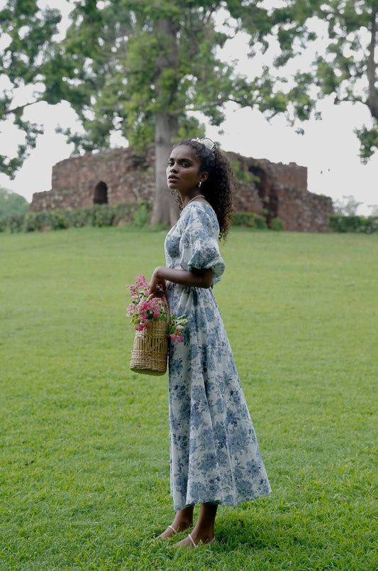 Blue printed boho midi dress